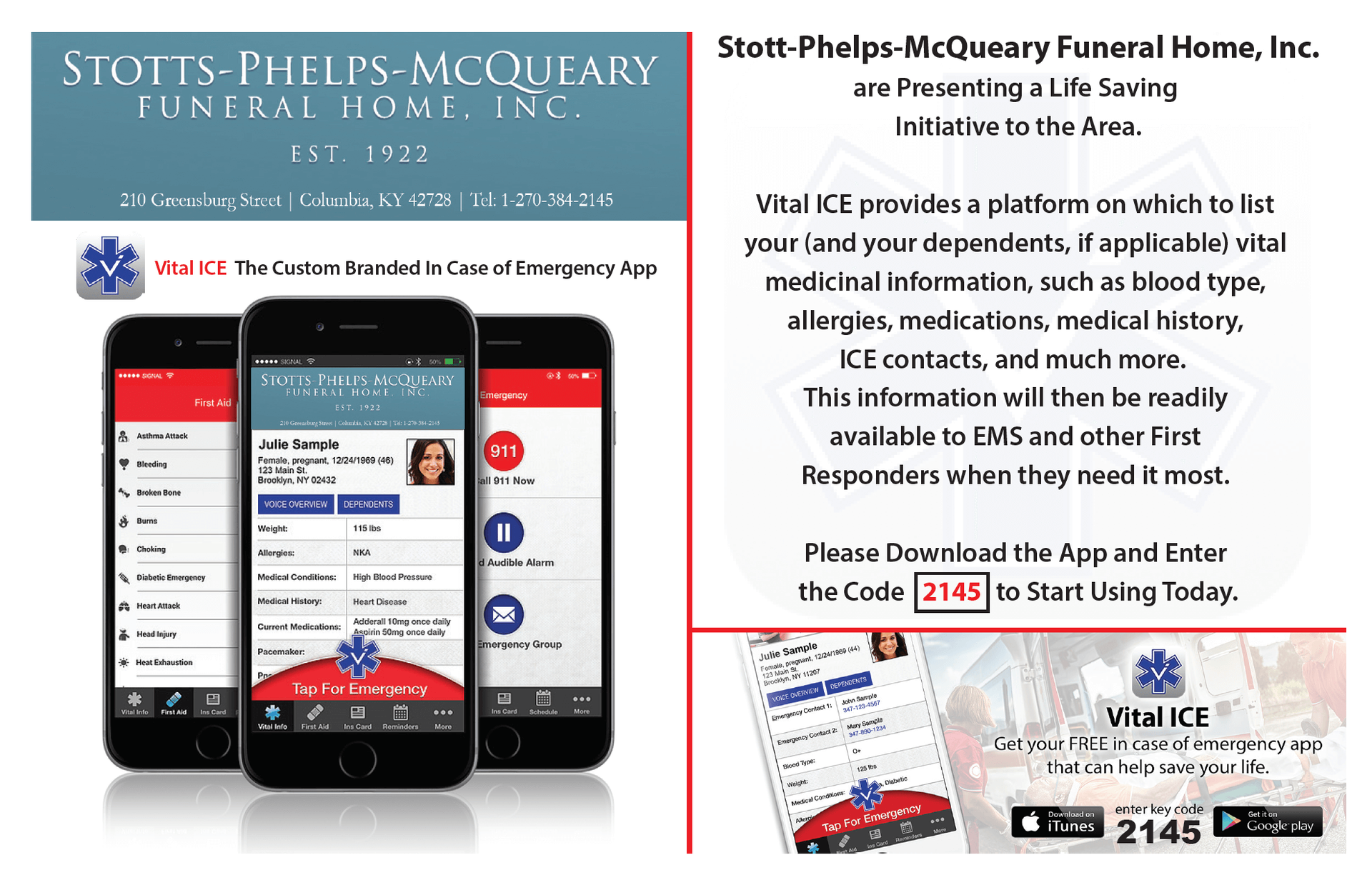 It's impossible to predict when an emergency may occur. To help you stay prepared, we've partnered with Vital Ice to provide you with a free medical alert system. Learn how to sign up below!